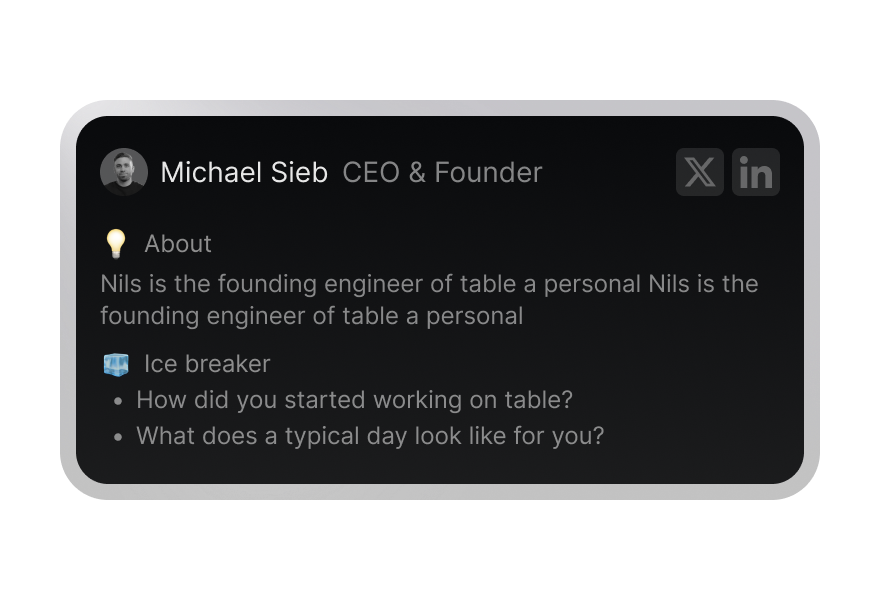 Walk into every meeting fully prepared with insights on all participants